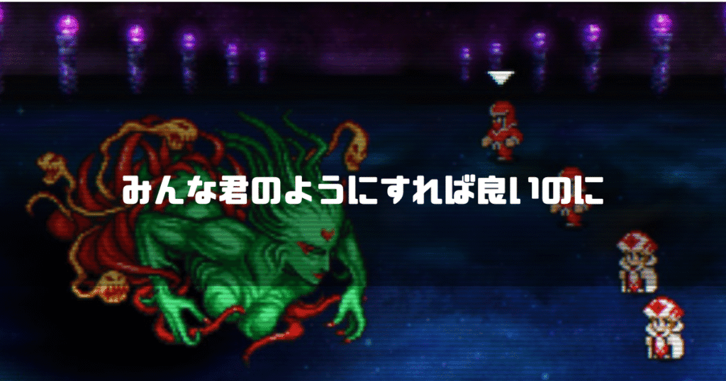 FF3のラスボス・暗闇の雲を背景に「みんな君のようにすれば良いのに」というタイトル文字を重ねたアイキャッチ