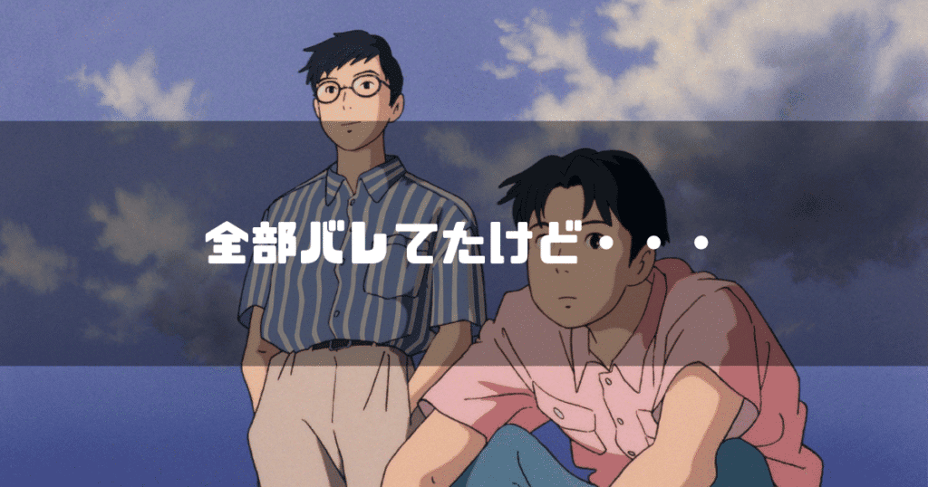 「海がきこえる」の登場人物 杜崎拓と松野豊を背景に「全部バレてたけど・・・」というタイトル文字を重ねたアイキャッチ
