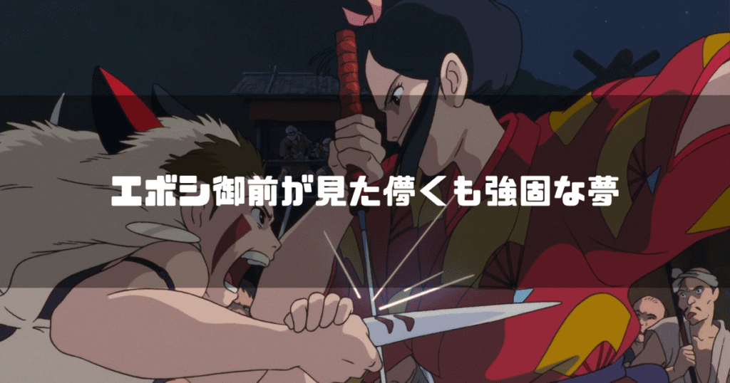 エボシ御前を語る上で最も需要なシーンは「アシタカからタタラ場の窮地を知らされたのに、タタラ場に戻らなかった」あのシーンである。さて、エボシはなぜタタラ場よりも、シシ神殺しを優先したのだろうか?この辺のことについて書いていこうと思う。エボシ御前は何を求めたのだろうか?