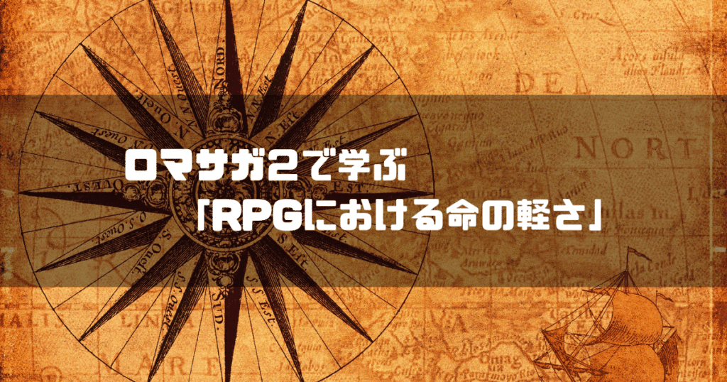 ロマサガ2はキャラクターが死ぬと補充され、皇帝すら代替可能であるというシステムにより、人間を「役割を演じる存在」として扱っている。これは実社会の構造と酷似しており、「命の尊さ」と「個の軽視」の両面をあぶり出す、極めてエグい表現となっている。