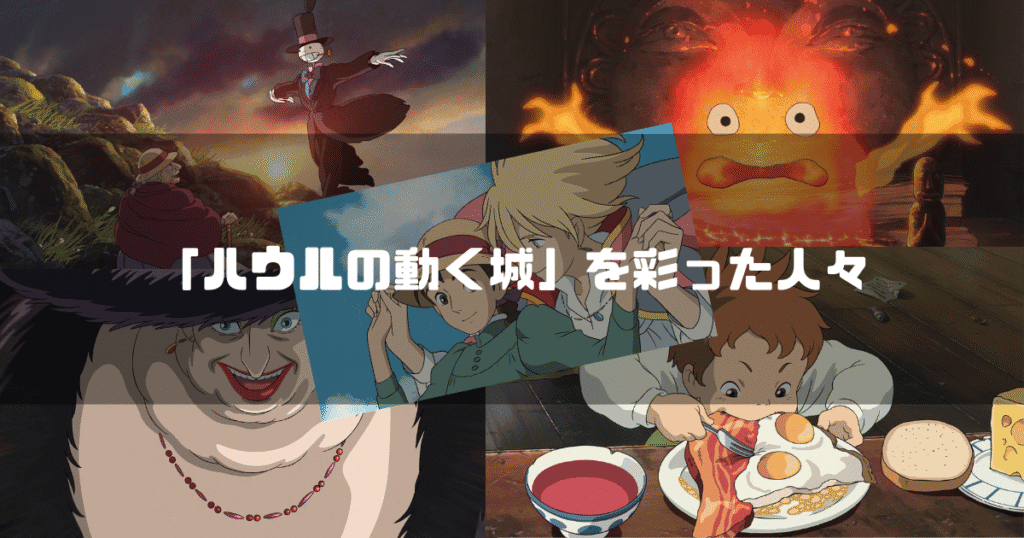 映画「ハウルの動く城」の主要キャラクター達を背景に「『ハウルの動く城』を彩った人々」というタイトル文字を重ねたアイキャッチ
